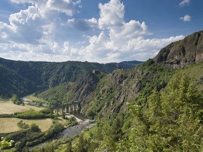 Afin d'enjamber la vallée, à la confluence de l'Auroux & de l'Allier, ce viaduc est le plus impressionnant de la ligne du Cévenol. De forme courbe, il possède 28 arches de 12m de portée chacune, 433m de longueur et 17m de hauteur.