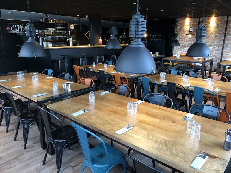 Côté Atelier, redécouvrez l’histoire de Saint Chamond et des Aciéries avec de grandes tables en bois, des chaises métalliques, des canapés rétros en forme de voiture, des luminaires industriels, le tout créant une ambiance cosy et conviviale.