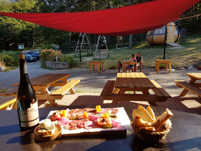 Il est possible de se restaurer avec un gratin de ravioles, une planche de fromage ou charcuterie à tout moment de l’après-midi. Des glaces et crêpes maisons sont aussi proposées.