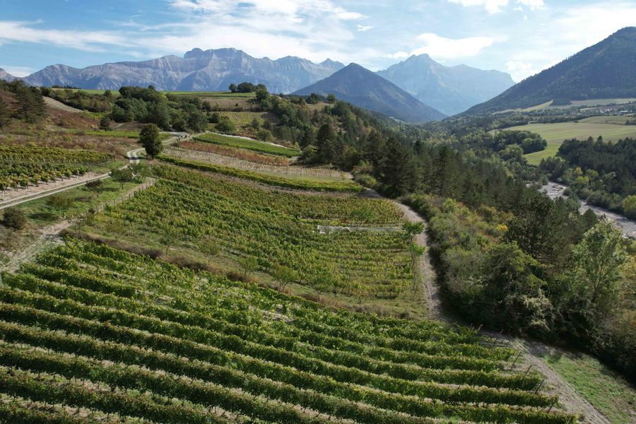 Les cépages choisis au Domaine sont diversifiés. Samuel Delus a planté à la fois des cépages locaux ou traditionnellement présents dans les Alpes comme le Persan, la Douce Noire, l’Onchette ou l’Altesse et des variétés plus classiques comme le Pinot noir, le Gamay, le Chardonnay ou le Viognier.