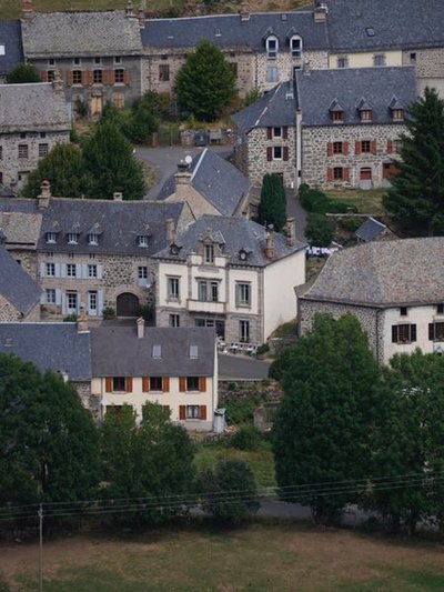 11- A l'intersection, prendre à droite entre le pré et la lisière de pins. Après environ 300 mètres, retrouver une grande piste puis la route qui ramène à Chavagnac. Descendre dans le village et prendre à droite au niveau du four à pain. A la placette, prendre à gauche et poursuivre sur environ 150 mètres.